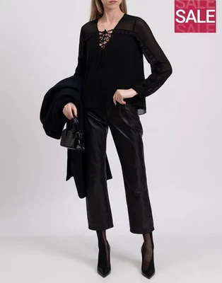 RRP β¬220 HAUTE HIPPIE Top Blouse Size S Lace Trim Partly Lined Lace Up Neck