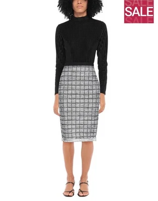 RRPβ¬246 D. EXTERIOR Knitted Pencil Skirt Size XS Check Lame Effect Made in Italy