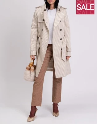 RRP β¬210 8 Trench Coat Size 42 / M Linen Blend Striped Double Breasted Belted