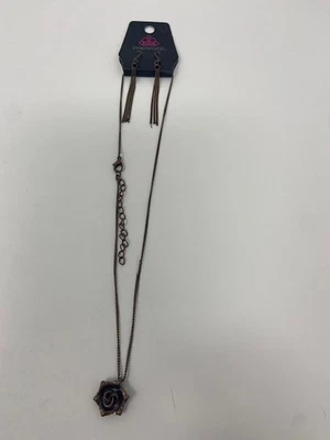 Paparazzi Necklace Earrings Set - Primrose Path- Copper- Dainty Rose New