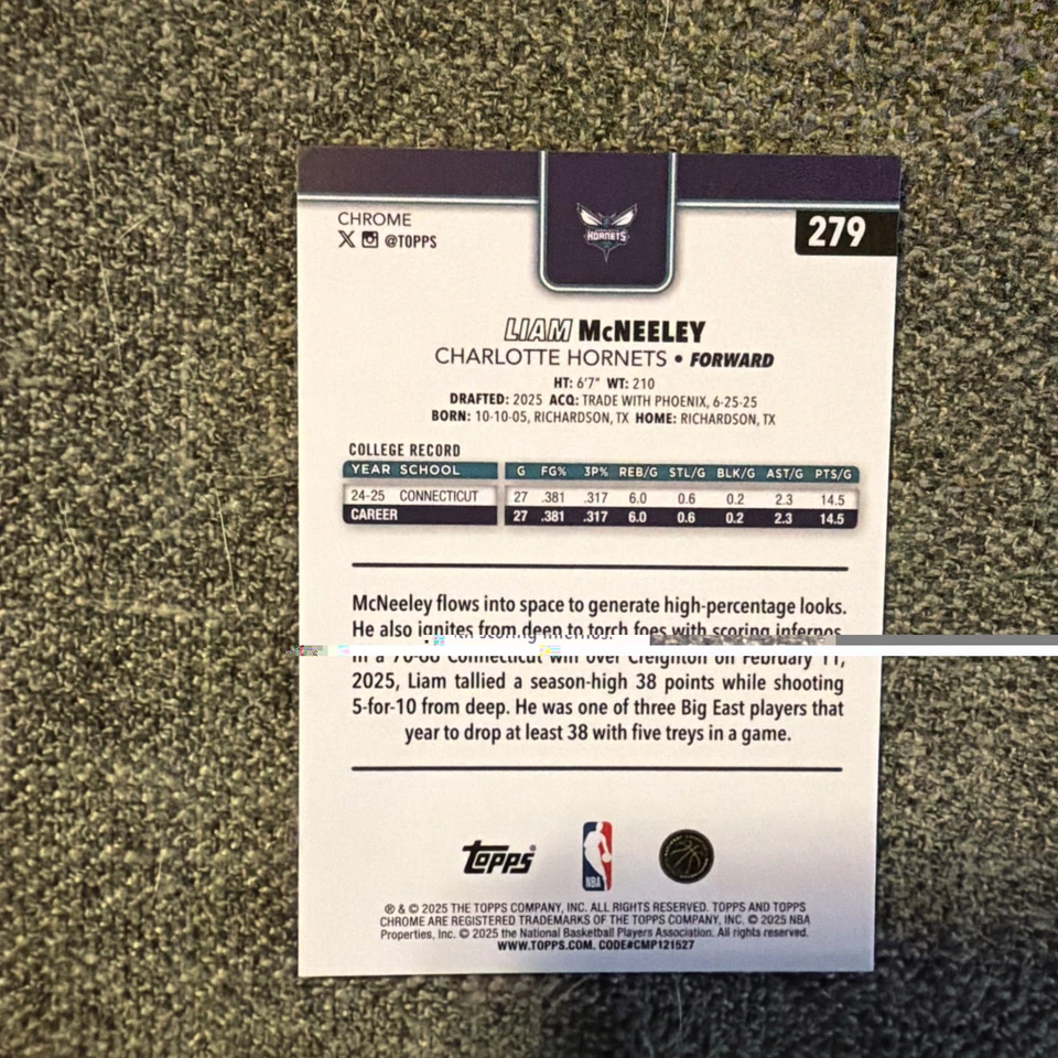 2025 Topps Chrome #279 Liam McNeely RC - Hornets
