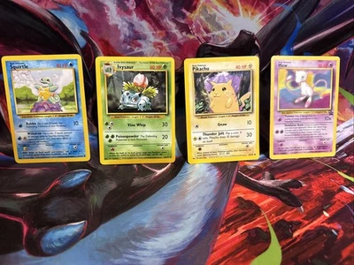 Mixed Pokemon Lot Squirtle(NM) Pikachu(LP) Ivysaur(NM) And Mew Promo(HP) WOTC