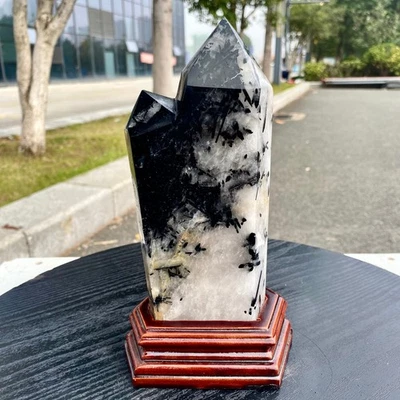 3.5LB Natural Black Tourmaline Obelisk Quartz Crystal Energy Column
