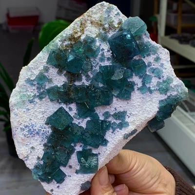 5.61LBNatural fluorite Blue Green Purple cubic mineral crystal sample/Zhejiang