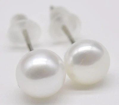 11 Bulk Natural 5-6mm White Freshwater High Luster Button Pearl Stud Earrings