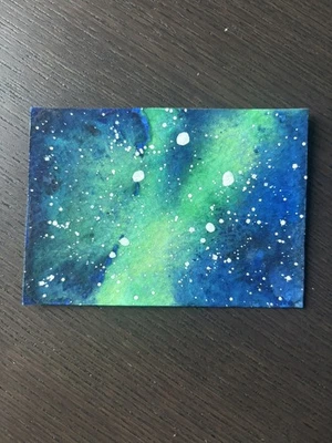 ACEO 2.5 x 3.5 Original Watercolor Galaxy Zodiac - Libra
