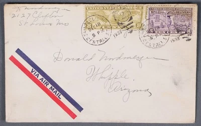 MayfairStamps US 1933 Missouri 10 Cent Special Delivery St. Louis to Whipple AZ