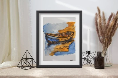 Original acrylic painting VELVET SIGNAL boat Modern Art Acrylic Painting PAPER