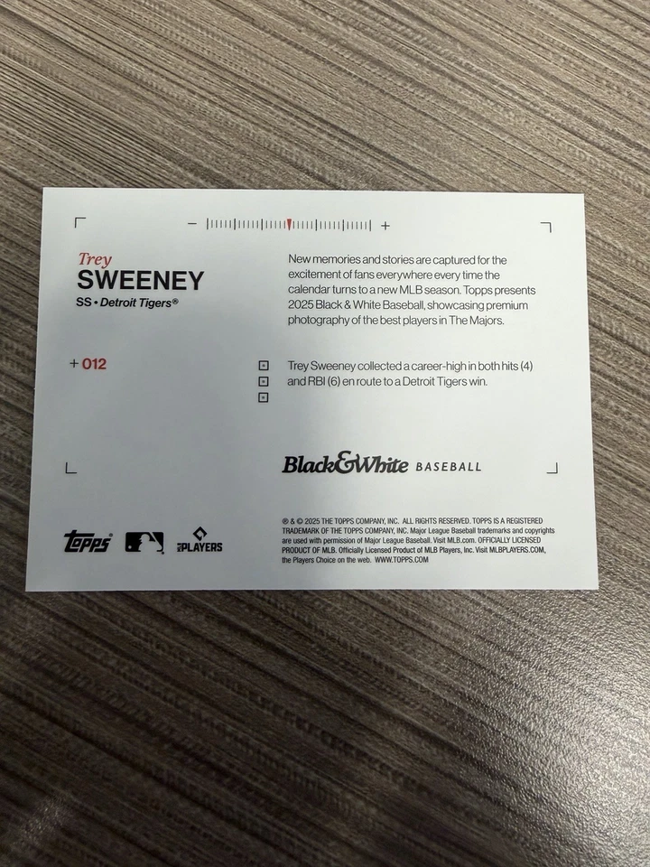 2025 Topps Black & White - Trey Sweeney #12 (RC)