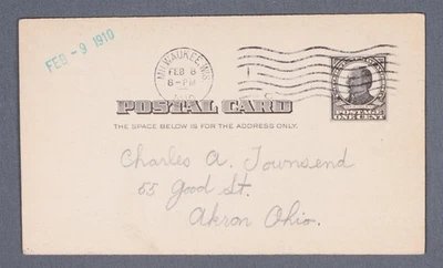 MayfairStamps US 1910 Wisconsin Milwaukee to Akron OH Stationery Card aaw_03451