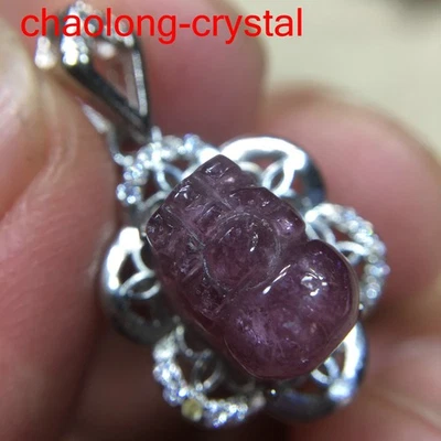 11.8CT 100% Natural Colored Tourmaline Carved Pi Xiu Inlaid Pendant CC099