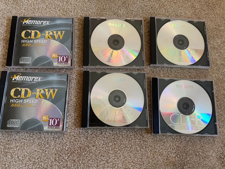 Lot of 6 Blank cd rw discs- 2 Memorex, 4 Philips