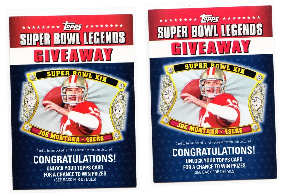 2011 Topps Super Bowl Legends Giveaway SBLG-3 2 Card Set of Joe Montana