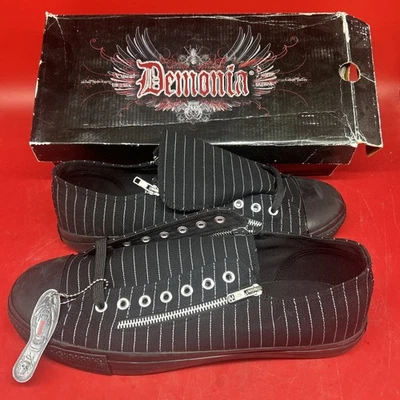 Demonia Deviant 06 Sneakers Mens 12 Wmns 14 Black Low Top Silver Stripes Nice