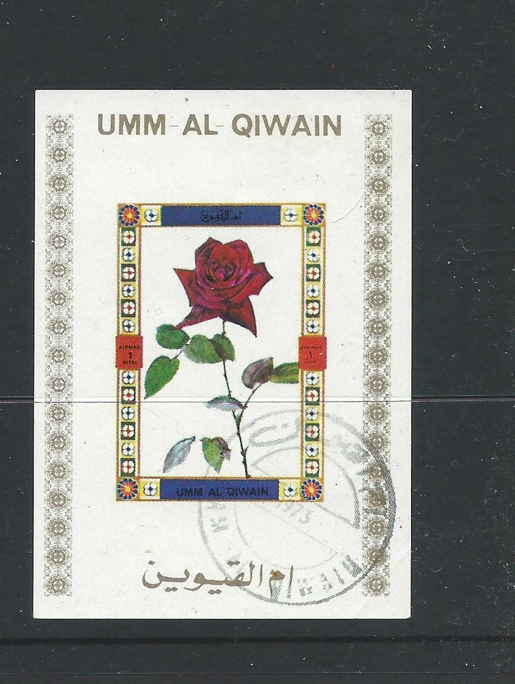 Umm-al-Qiwain Single Rose Mini Sheet Used Gum on Rear