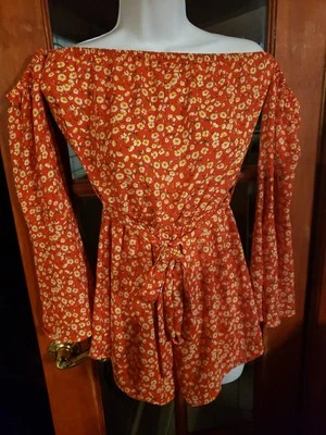 Orange Floral Romper M Outfit Off Shoulder Bell Sleeve Rue 21 Stretch NWT
