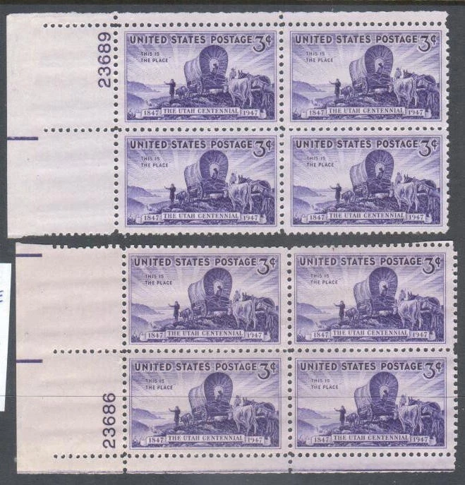 USA Error! MNH Stamps Scott #950 Utah Issue Two Blocks of 4 Different Color Glue