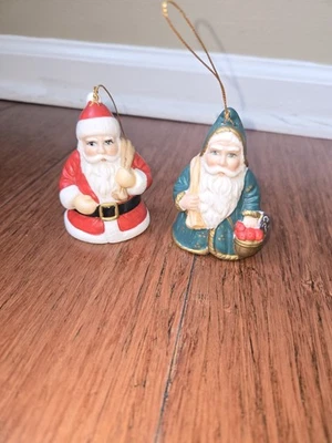 Set Of 2 Santa Ceramic Christmas Bell Ornaments