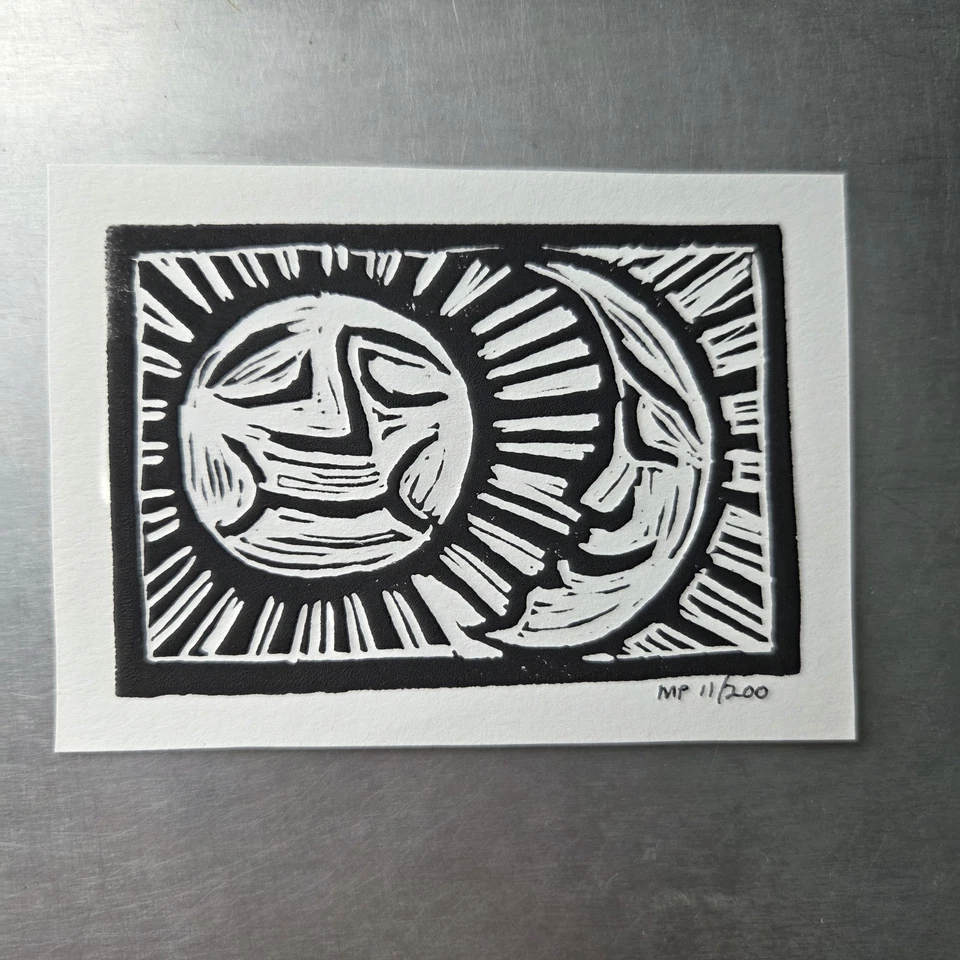 Original Linocut ACEO Sun and Moon Printmaking Celestial Lino