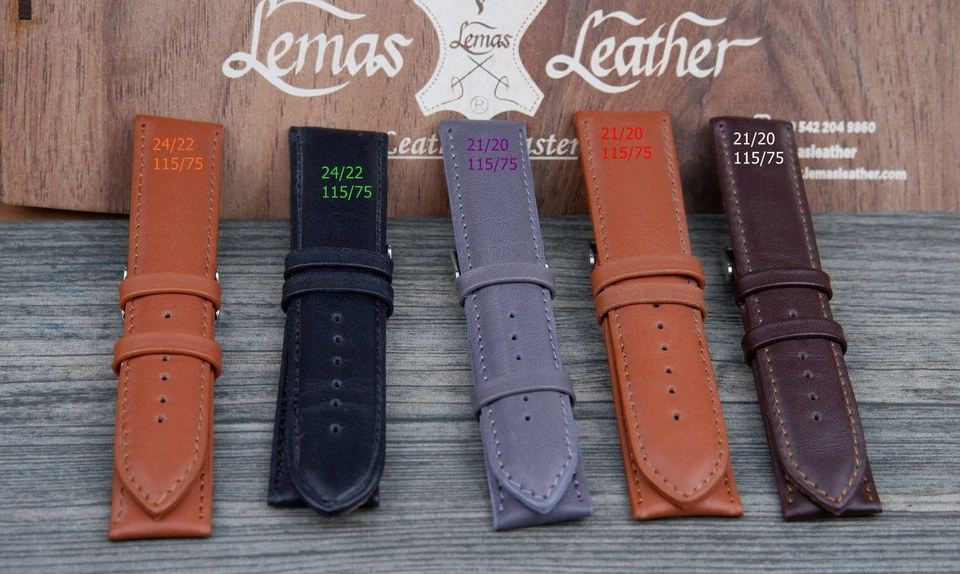 Handmade Leather Watch Straps Five Pieces,Black,Grey,Dark Brown and Tan Colour