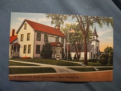 St. Francis Xavier Church & Community Center Winthrop Maine Vintage Postcard
