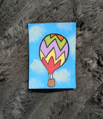 Original ACEO Hot Air Balloon Floating In The Sky Painted Transportation Color