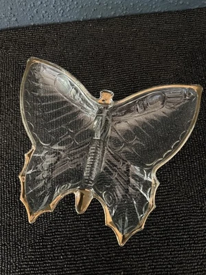 MCM Jeannette Glass Butterfly Clear Gold Trim Candy Jewelry Trinket Dish 1950s
