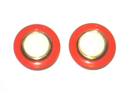 Earrings Concentric Circle Dangle Drop Vintage Clip On Red White Gold Vtg