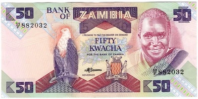 1986-88 ZAMBIA 50 KWACHA NOTE - p28 XF