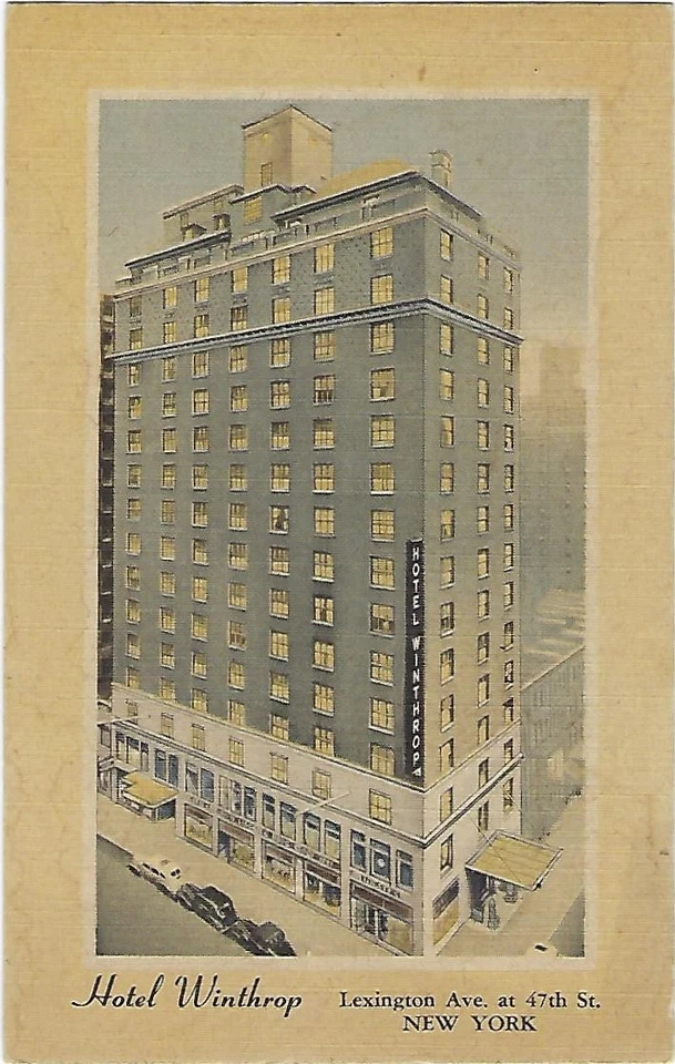 Hotel Winthrop-Lexington Ave. at 47th Street-New York-1940's Postcard