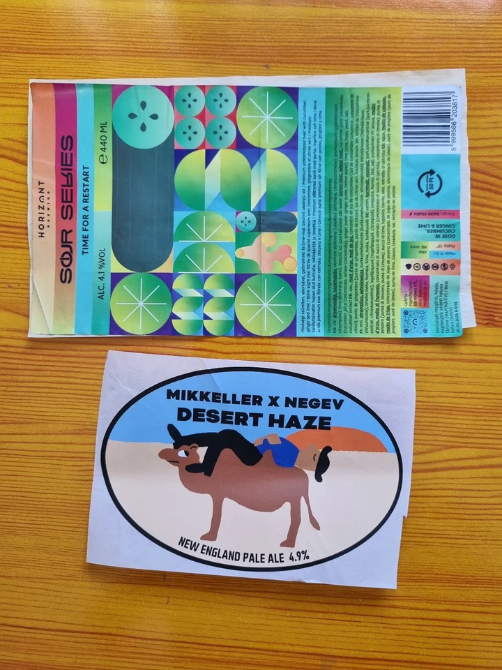 Two beer labels - Desert Haze and Time For A Restart (Hungary)