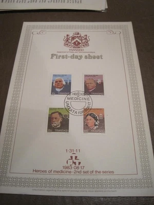 Transkei 1983 Heroes of Medicine, 2nd. series on FD cover sheet .. ..4g