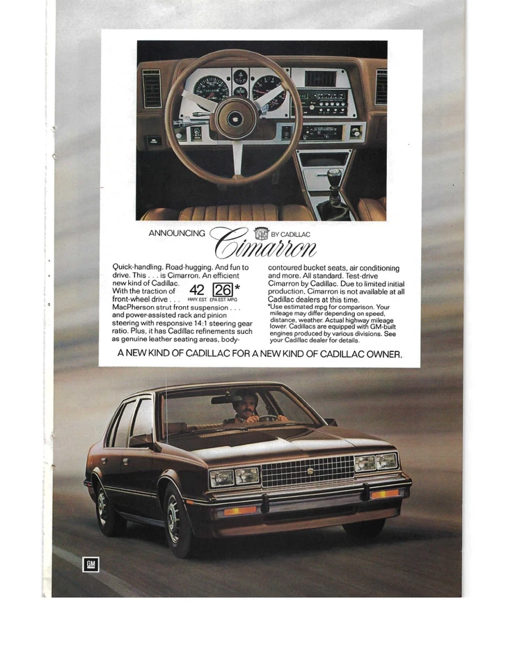 Vintage Cadillac Cimarron Ad - National Geographic Print Ad