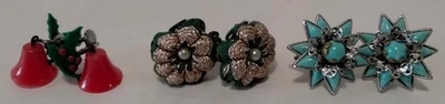 VTG Clip On Screw Back Earrings Lot Faux Turquoise Pearl Poinsettia 3Pair Total