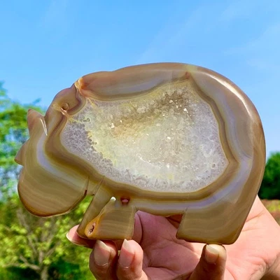 378G Natural Grey Agate Crystal Cave Hand-Carved hippopotamus Quartz Gem Healing