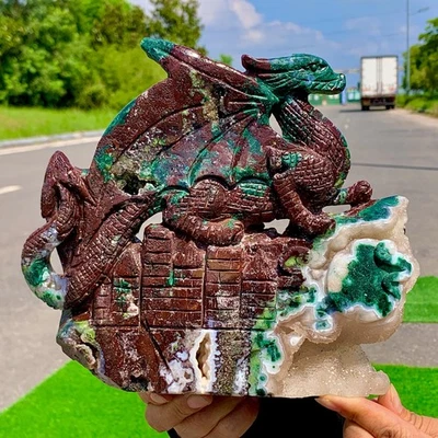 4.0LBNatural Ocean jasper+Malachite DruzyGeode FlyDragon spiritual energyRepair