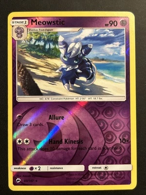 Pokemon Card Meowstic Burning Shadows Reverse Holo Rare 60/147 Near Mint