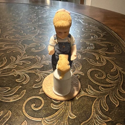 vintage Homco Denim Days porcelain figurine, likely titled "Morning Chores"