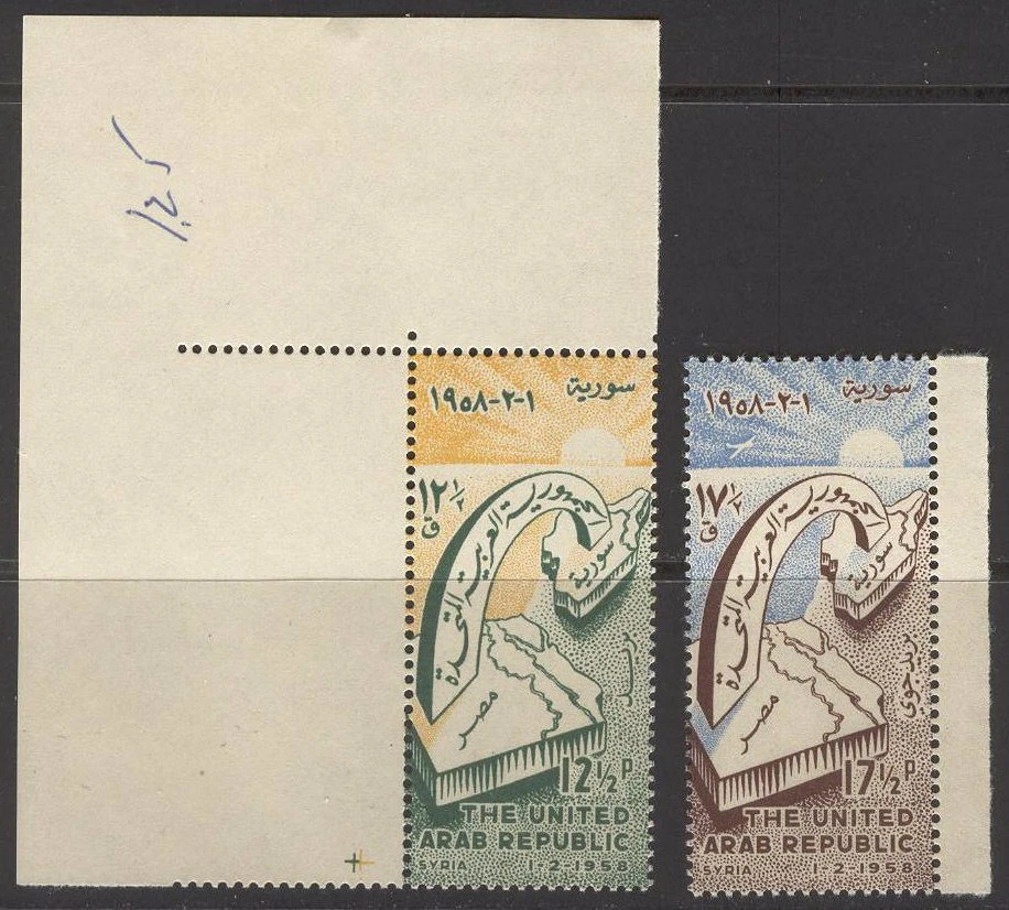 Arab A20 MNH 1959 2 Sets (2v) Red OVPT Map Communications