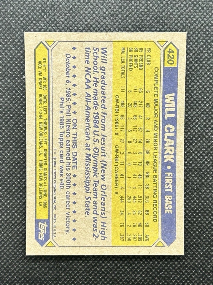 Will Clark 1987 Topps Rookie Card #420 (RC)