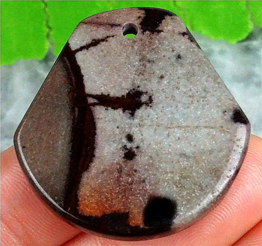 Q14699 39x36x4mm Natural Scenic Dendritic Jasper Shield Pendant Bead