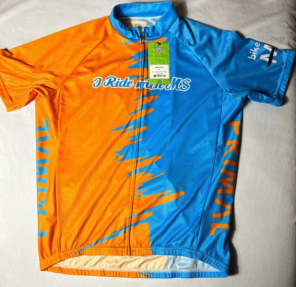 Primal Cycling Jersey Mens Large Blue Orange I Ride With MS Full Zip Polyester