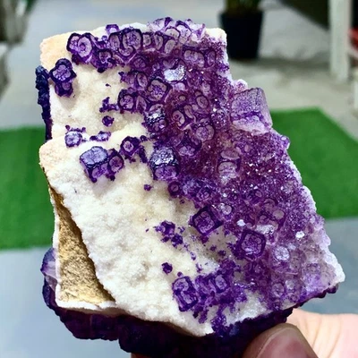 69G Inner Mongolia Natural Fluorite Purple Edged Cube Crystal Mineral Specimen