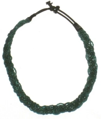 Necklace Beaded Braided Green Womens