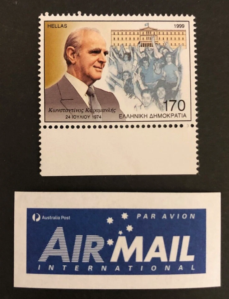 1999 Greece Konstantinos Karamanlis 170d MNH + Unused Aus Post Par Avion Sticker