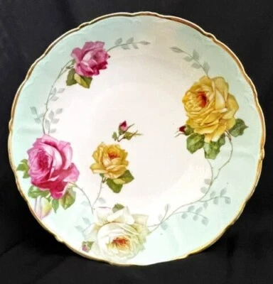 Antique Porcelain Bowl P S Bavaria Gold Luster Rim With Rose Decor 10”