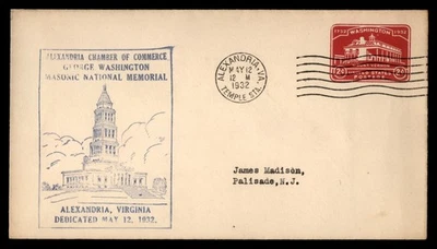 Mayfairstamps US 1932 Washington Masonic Natl Memorial Alexandria Cover aaw_5497