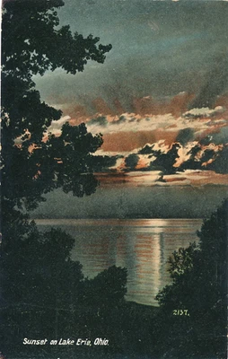 SUNSET ON LAKE ERIE, OHIO. OH. ARTISTIC SCENE.