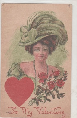 Valentines Day fantasy used 1910 postcard beautiful woman