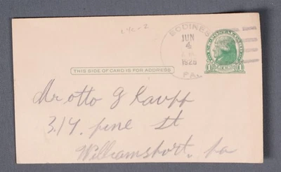 MayfairStamps US 1925 Pennsylvania Bodines to Williamsport PA Stationery Card aa